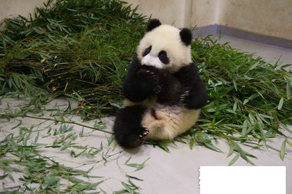圆仔学啃竹叶有模有样(图片来自台媒)