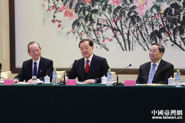 中国国民党荣誉主席、两岸和平发展基金会董事长连战出席座谈会并讲话。(中国台湾网 于斯文 摄)