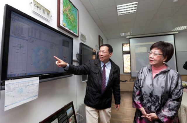 2月17日吕秀莲(右)参访大屯火山观测站(图片来自台媒)