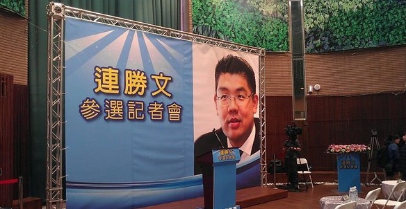 连胜文参选记者会无党徽,幕僚回应非刻意切割国民党。(台媒图)