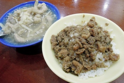 连胜文记者会后到三元号大啖平价鲁肉饭,对面则是艺人贾静雯。(台媒图)