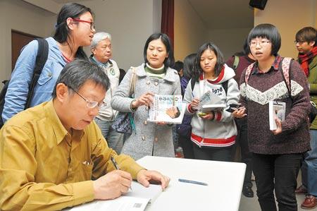 柯文哲(左一)昨日直言,从现在起至选前双方将维持五五波,要打赢真的很困难。(图片来自台湾《中国时报》)