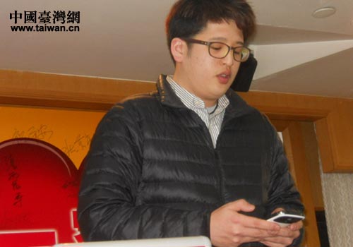 台生会负责人叶晏其替不能到场的罗小妹读感谢信。(中国台湾网 林天泉 摄)