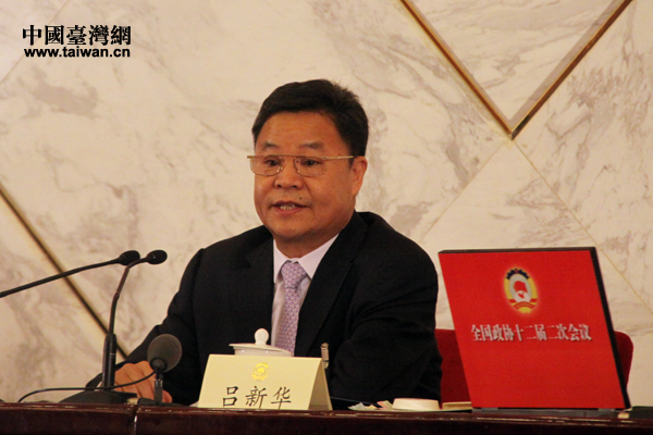 3月2日下午,全国政协十二届二次会议新闻发布会在北京人民大会堂举行,大会发言人吕新华介绍会议有关情况,并回答记者提问。(中国台湾网 王怡然 摄)