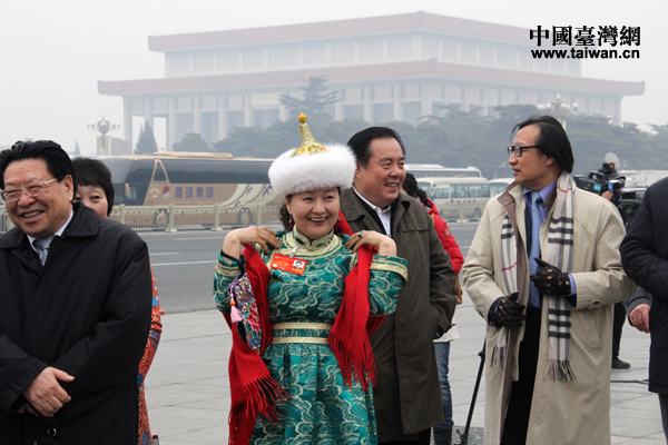 服装艳丽的少数民族委员。(中国台湾网 王怡然 摄)