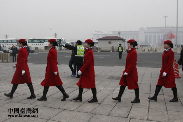 图为礼仪队步入人民大会堂。(中国台湾网 张洁 摄)