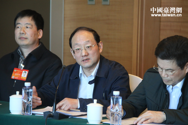 3月4日,全国政协十二届二次会议首次展开分组讨论,台盟中央的委员针对昨日的政协常委会工作报告和提案工作情况报告展开讨论。(中国台湾网 张洁 摄)