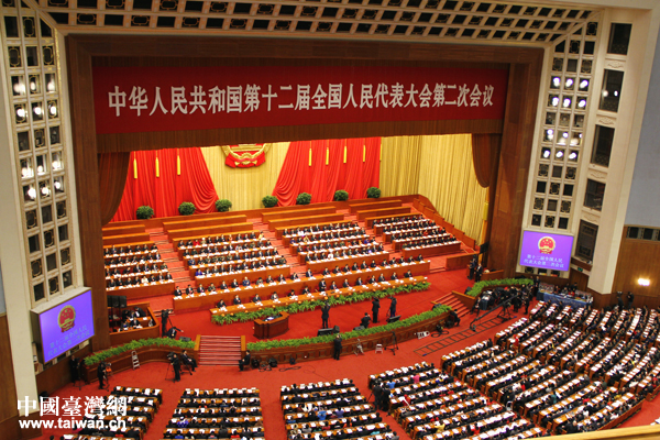 今天上午9时,第十二届全国人民代表大会第二次会议在北京人民大会堂拉开帷幕。(中国台湾网 高斯斯 摄)