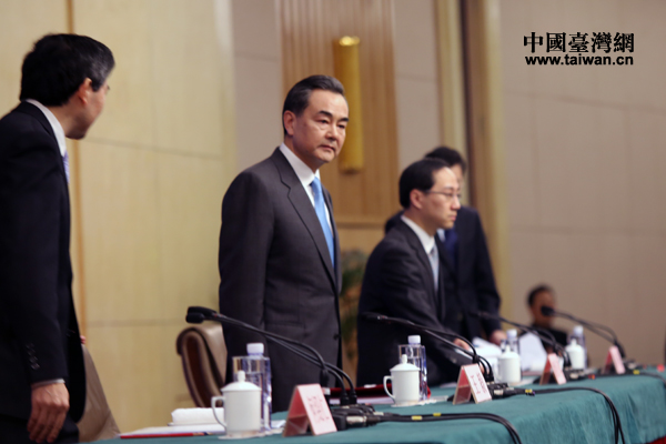 外交部部长王毅出席十二届全国人大二次记者会。(中国台湾网 王思羽 摄)