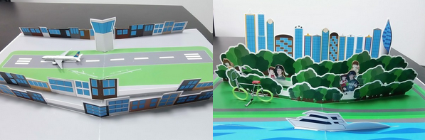 姚文智在辩论会上展示的立体书,展示松山机场翻转成中央公园的模样。(台媒图)
