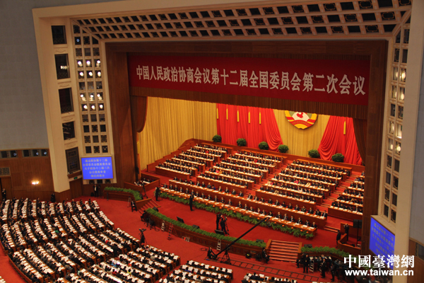 全国政协十二届二次会议3月12日上午举行闭幕会。(中国台湾网 王怡然 摄)