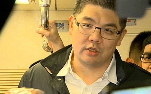 搭捷运谈政见恐违法,连胜文幕僚急制止。(台媒图)
