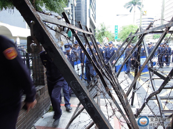 “立法院”周遭仍维持上千警力,警方交班都会引起学生骚动。(图片来自台媒)