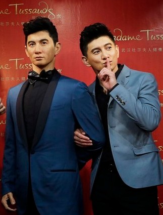 吴奇隆近日替自己的时装蜡像揭幕,被问到是否希望和穿婚纱的刘诗诗蜡像站在一起,笑称要看女友意见。(台媒图)