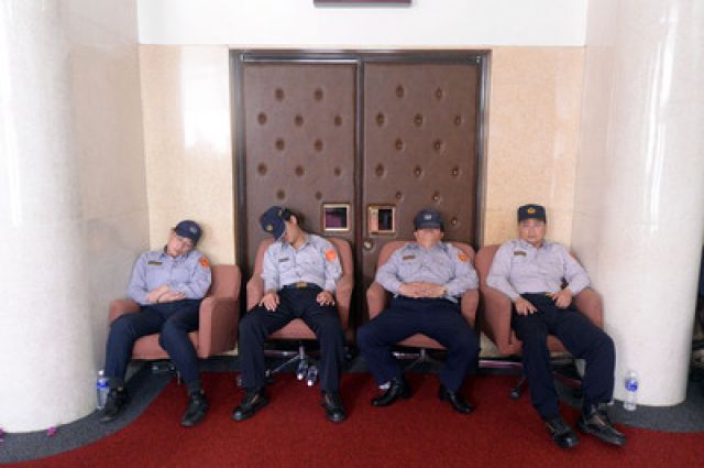 反服贸占领“立院”,警察累坏了。(台媒图)