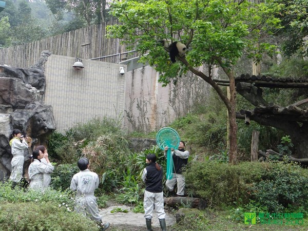 中国台湾网3月21日消息 据台湾《联合报》报道,台北大熊猫宝宝“圆仔”要到户外展场和民众见面了,台北动物园发言人曹先绍表示,因户外场地不确定因素较多,保育员担心圆仔爬到太高的地方,会发生危险,因此做足准备,模拟在树下铺软垫、设网子,防止圆仔坠落。