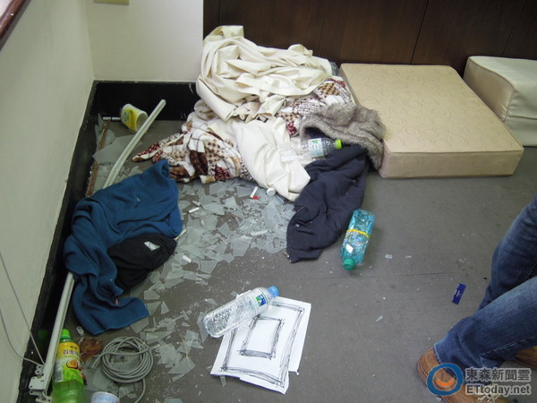 “行政院副秘书长”萧家淇24日早赴“行政院”检视破坏情况,除了中央大楼大门被拆下,“公关交际科”办公室的门窗碎裂一地,内部凌乱不堪,另外接待室内的椅子也被移到窗边。此外,是“政务委员”陈希舜的办公室,内部彷彿被清空,墙上的台湾地图还被民众涂鸦,所幸“行政院长”办公室并无被民众闯入。