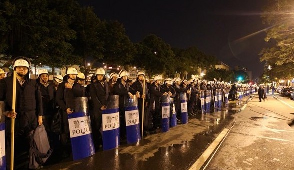 新北市警方支持台北市警方执行反服贸抗争维护勤务,民进党市议员要求市长朱立伦撤回警力。(台媒图)