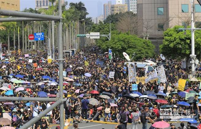 中国台湾网3月30日消息 综合台湾媒体报道,反服贸活动持续进入第12天,反服贸团体今日下午1时,走上凯道静坐抗议。静坐群众纷纷穿上黑色上衣,表达反服贸的诉求。