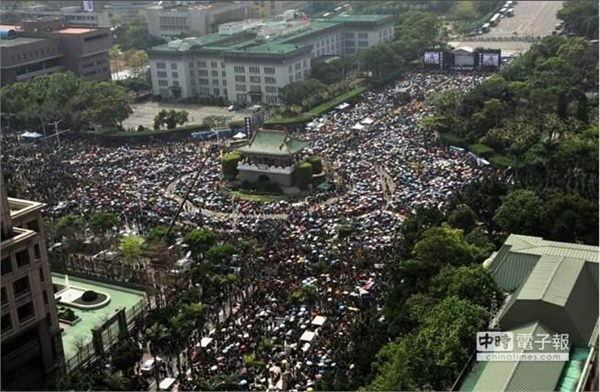 中国台湾网3月31日消息 据台湾“中央社”报道,台“警政署”昨晚说,反服贸330凯道游行,活动从下午1时开始,人数最多为下午4时约11.6万多人,到晚间7时剩5.7万人。而据媒体报道,主办单位估计有50万人涌入凯道。