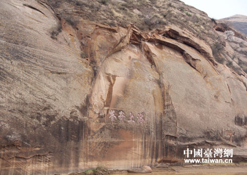 "洛上奇峰"的摩崖题刻。(中国台湾网 秦彬 摄)