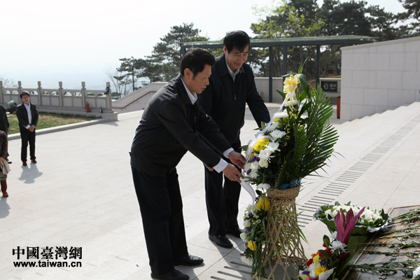 黄志贤副主席、张宁秘书长向无名英雄敬献花篮。(黄文涛 摄 中国台湾网发)