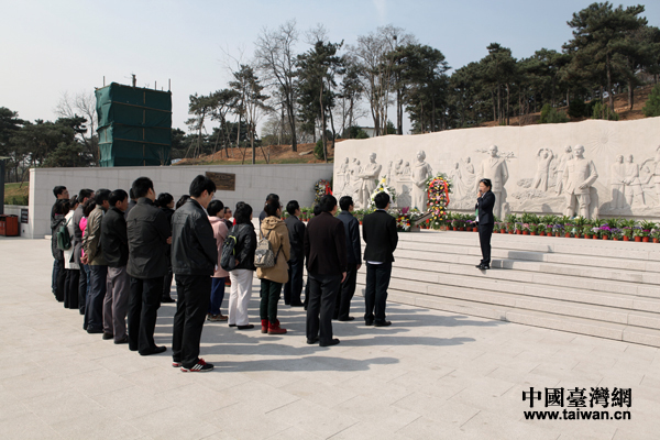 在英雄塑像前鞠躬致敬。(黄文涛 摄 中国台湾网发)