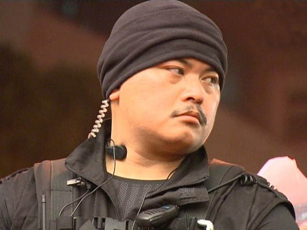 反服贸学运领袖身边的保镖全副武装,成员都有EMT证照。(台媒图)