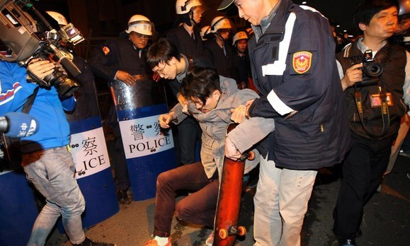 3月24日凌晨,警方驱离行动开始。(台媒图)