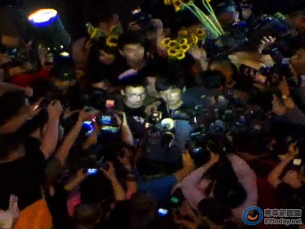 林飞帆、陈为廷(中)退出议场(图片来自台媒)