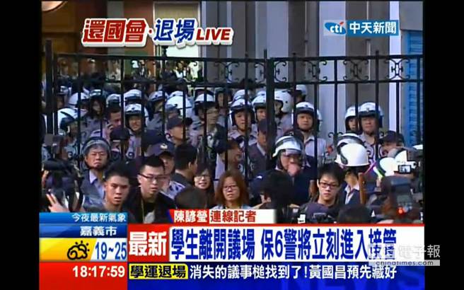 学生离开议场,警察立刻进入接管。(图片来自台媒)