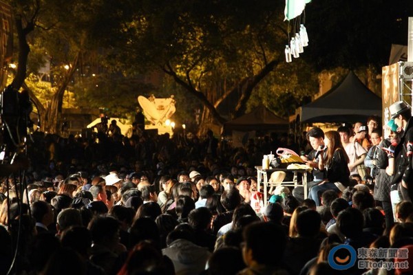 不肯退场的群众聚集在“立法院”前广场。(图片来自台媒)