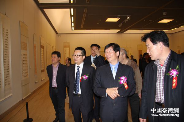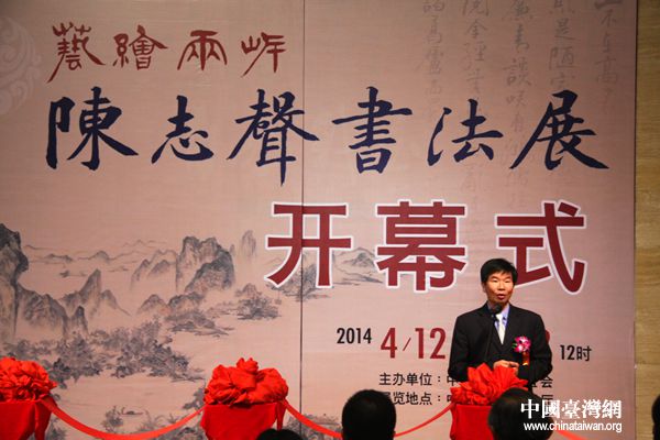 4月13日,以“艺绘两岸”为主题的“石溪畊砚,翛墨京华——陈志声书法作品展”开幕式在中国美术馆举行。(中国台湾网 宣玲玲 摄)