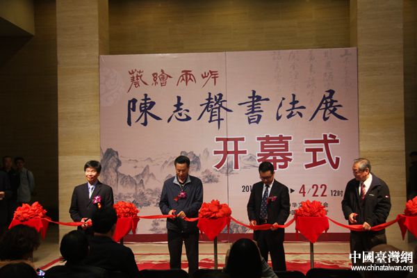 中国台湾网4月13日北京消息 4月13日下午,以“艺绘两岸”为主题的“石溪畊砚,翛墨京华——陈志声书法作品展”开幕式在中国美术馆成功举行。文化部港澳台办主任助理、中华文化联谊会副秘书长李保宗、文化部港澳台办台湾处处长廖冰、中国美术馆党委书记游庆桥、台湾中国书法家协会理事长陈炫明、台湾著名书法家陈志声及其夫人等两岸书法爱好者共同出席了开幕仪式。