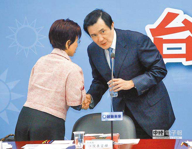 国民党主席马英九表示王金平党籍案提上诉,是为了维系党制度完整及维持党运作,不得不然,并非针对王金平,今后会与王在政务上继续合作。党团大会后,马英九与“立法院副院长”洪秀柱交换意见。(图片来源:台湾中时电子报)