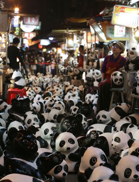 中国台湾网4月24日消息 据台湾《中国时报》报道,1600只纸雕熊猫在台北展出以来,辛苦担任保育大使,昨晚台北市长郝龙斌特别以“千岁宴”设席款待,慰劳这些萌到爆表的熊贵宾大军,也邀双熊“逛”宁夏夜市,为即将巡回全台的黑白双熊饯行。