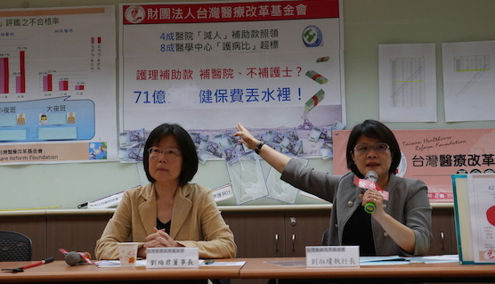 “医改会”执行长刘淑琼表示,健保自2009至2013年加码71亿办理《提升住院护理照护质量方案》,预计今年还要再编20亿元,但有超过5成的医院整体护理人力却没增加。还指出减人最多的医院,包括台北荣总、中山医大和汐止国泰,甚至照样拿到高额补助。