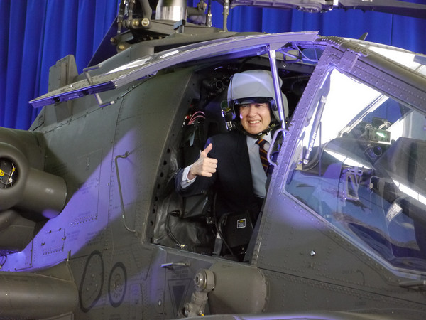据报道,台湾陆军向美国购买的30架阿帕奇AH-64E攻击直升机,首批6架在去年11月运抵台湾。马英九在接机酒会亲自登上阿帕奇,并戴上特制的飞行头盔,对外比出大大的“赞”字,脸上还满是笑容。