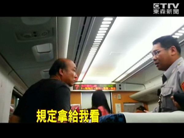 据报道,一列北上的太鲁阁号列车出现了一名“逃票伯”,列车长没办法只好找铁路警察来处理,警察先是劝这名男子补票,“这火车不是你家的,你知道吗?”列车长也说,“都是要照规定啊!”逃票男子则说,“按照规定,你就拿规定给我看嘛!”