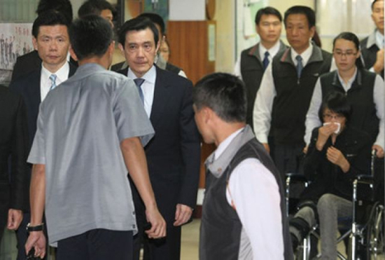 马英九2日出席活动,在面对媒体询问母亲秦厚修病况时,脸色凝重并未响应。(图片来源:台湾“中央社”)