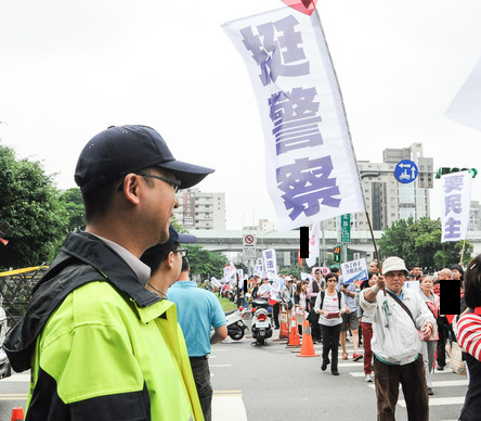 昨日的游行从台北火车站出发,许多人沿路大喊“我是人、我反乱!”“反暴力、反占领!”“要民主、要法制!”民众步行到台“警政署”,送上鲜花替警察加油打气;“副署长”何海民代表收下,表示这场活动“很温馨”。