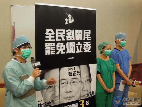 “割阑尾”团队5日召开记者会,呼吁民众开始动刀。(图片来自台媒)