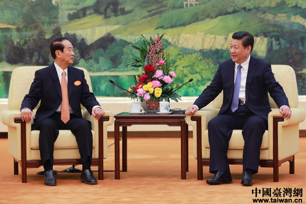 中共中央总书记习近平7日上午在北京人民大会堂会见了亲民党主席宋楚瑜一行。(中国台湾网 于斯文 摄)