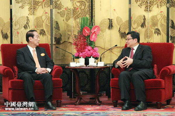 海协会会长陈德铭7日上午在北京会见了宋楚瑜一行。(中国台湾网 何建峰 摄)