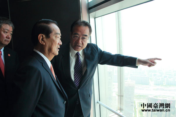 在与海协会会长陈德铭会见前,亲民党主席宋楚瑜(中)在北京国贸大厦顶层参观。(中国台湾网 何建峰 摄)