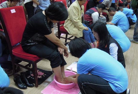 台湾“监察院”9日举办母亲节敬亲洗脚活动。(台媒图)