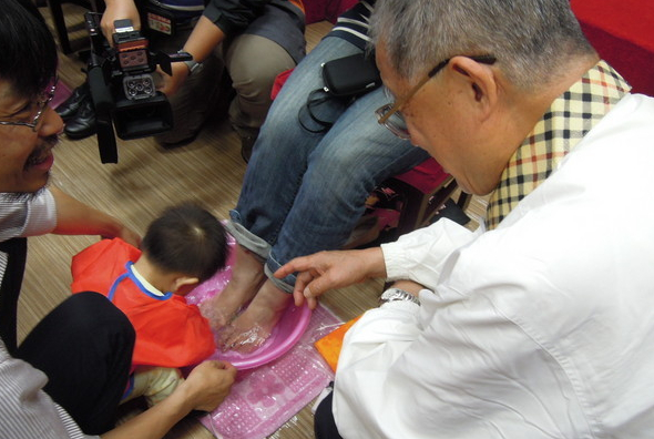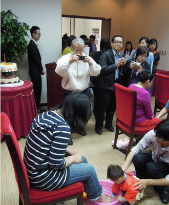 王建煊就任“监察院长”后,开始举办敬亲洗脚活动,今日许多员工带着年迈的妈妈出席,亲自替母亲脱袜、洗脚,“监院正副秘书长”陈丰义、许海泉也都列席观礼。会中有3岁的小男孩在爸爸的帮助下,有样学样为妈妈洗脚,王建煊被吸引过去后,还主动拿起相机拍下温馨的画面。