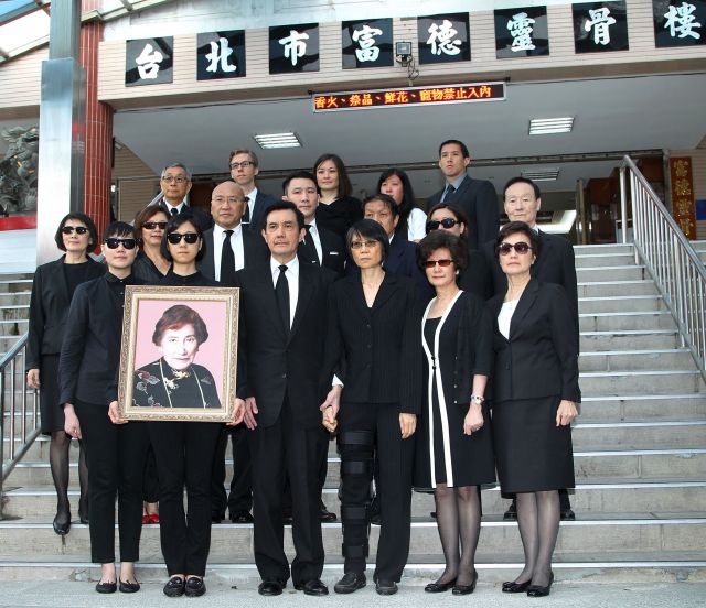 马英九与家人感谢各界对母亲秦厚修的关心,鞠躬致谢。(台媒图)