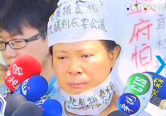 决定禁食,帮儿子找真相,因为当时最后一通电话,是儿子跟妈妈报备要回来过母亲节,但台军方认定是饮弹自杀,18小时内结案火化。这几年,蔡妈妈为了真相奔波,却没结果,决定在母亲节开始禁食。有类似经验的洪仲丘舅舅穿着印有洪妈妈哀伤神情的T恤前来声援,台军方曾经答应过要作弹道实测,还原真相,却迟迟没有实践。
