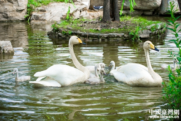 小天鹅和父母快乐嬉戏(中国台湾网 宣玲玲 摄)